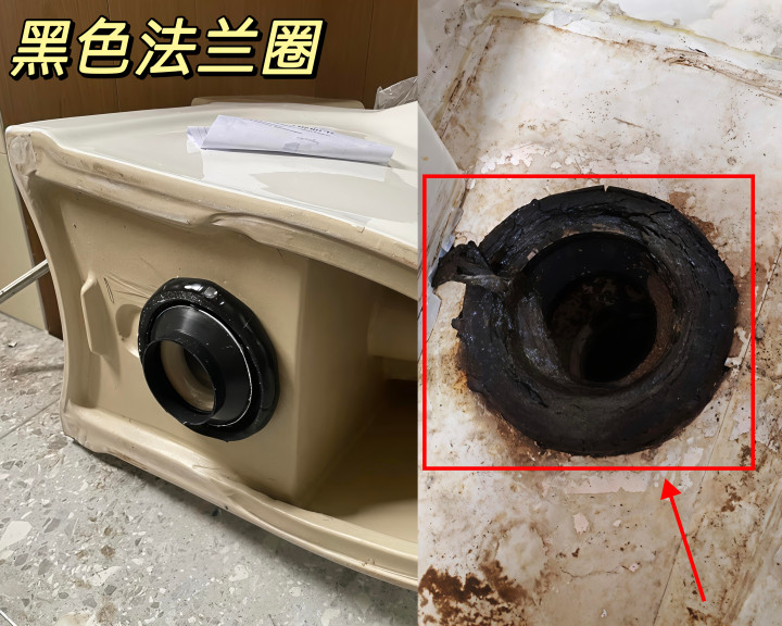 千万别装:马桶自带的玄色法兰圈,基本王人是平庸橡胶材质偏软,密封性一般,容易老化,装配后后期容易出现渗漏、返味,耐用性差 。