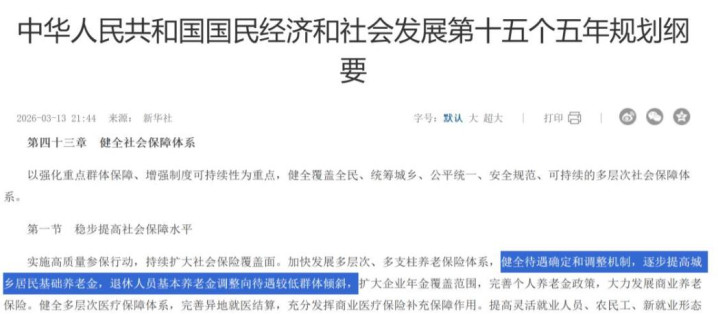 咱们阐述最近出台的“十五五”蓄意进行分析,在第43章健全社会保险体系中,第一节等于稳步提升社会保险水平,这里的社会保险待遇水平包含了在任员工一样包含了退休东说念主员,那么对于退休东说念主员来说,上述照旧分析了,待业金行动主要的经济收入泉源,稳步提升养老保险水平的话对于退休东说念主员无非是通过提升待业金水平得以体现,同期明确健全待遇细目和诊治机制,是以这里粗略等于原因,为迟迟莫得明确是否进行员工基本待业金诊治的原因,健全意味着进一步优化,是否对于待遇细目以及诊治机制会进一步进行健全优化,这点照旧充满期待的,是以不才一句明确暗示了诊治机制主要歪斜要点,等于退休东说念主员基本待业金诊治向待遇较低群体歪斜,是以这里不错看出,在“十五五”的蓄意敷陈了在健全诊治机制下向待遇较低群体歪斜,那么若何歪斜何如歪斜?