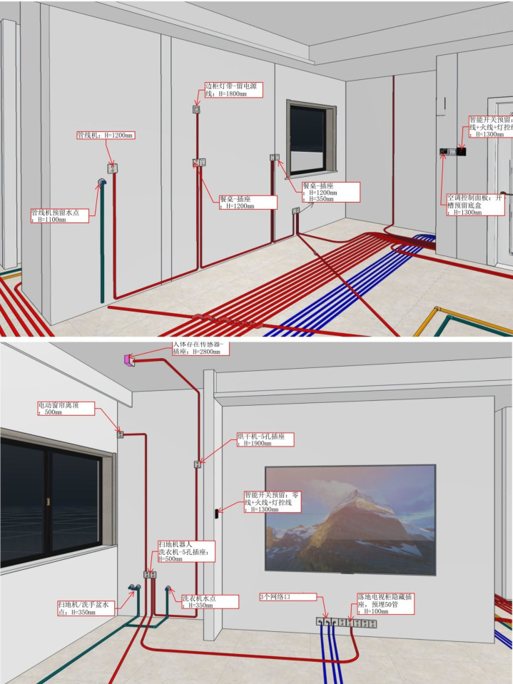 精装房频频出现的情况是:床头没插座、电视墙插座不够、厨房小家电没地插。解决主张是轨说念插座(颜值高,符合厨房、餐边柜)或一行多插排(符合床头、书斋),毋庸开槽走线,安全又实用。