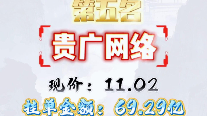 ·第五名:贵广集聚,现价11.02,挂单金额69.29亿。